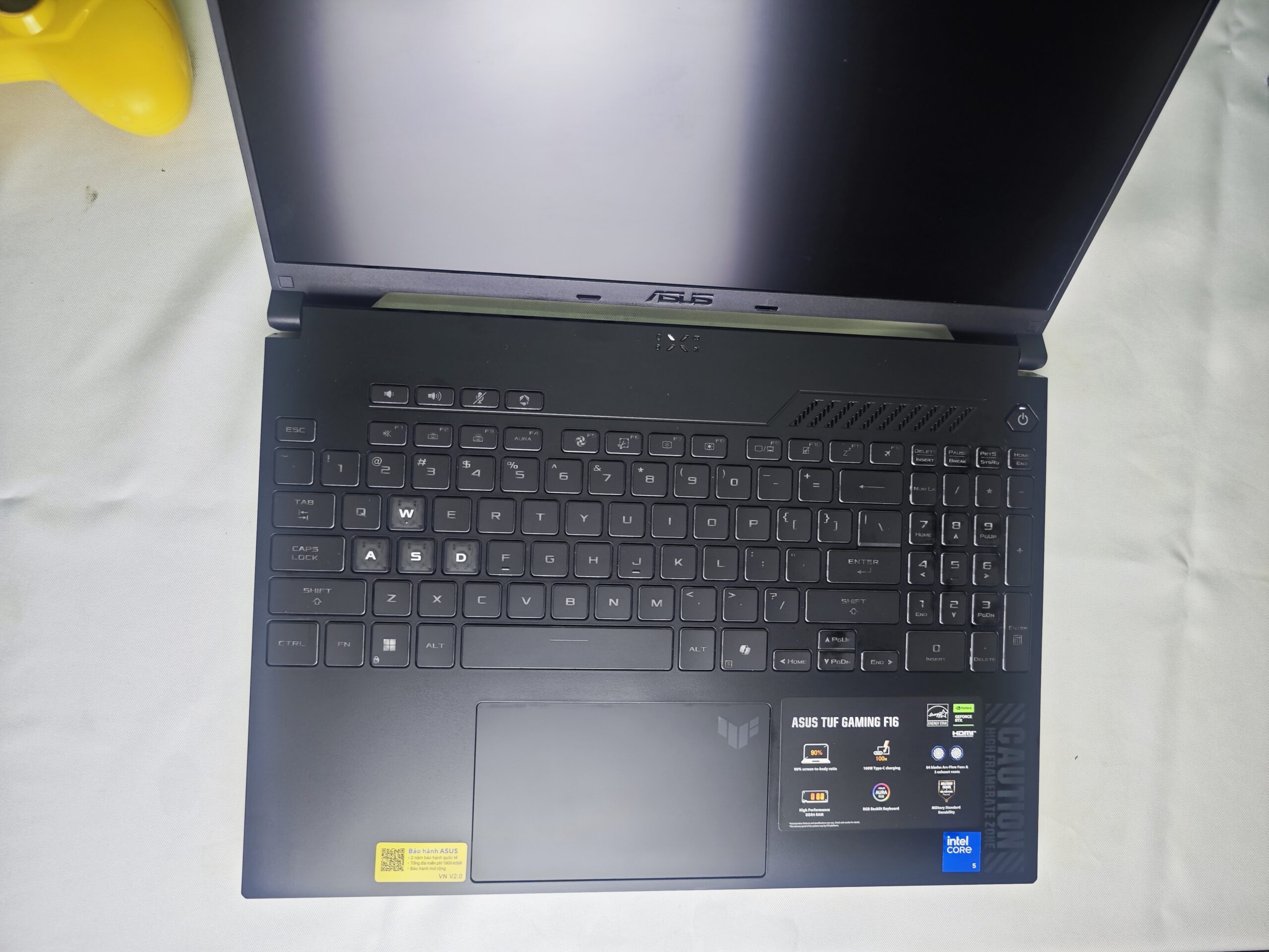 Dòng F16 năm nay được ASUS cải tiến viền màn hình mỏng hơn, tổng thể gọn nhưng vẫn mang phong cách TUF mạnh mẽ, đúng chuẩn “chiến binh” trong tầm giá.